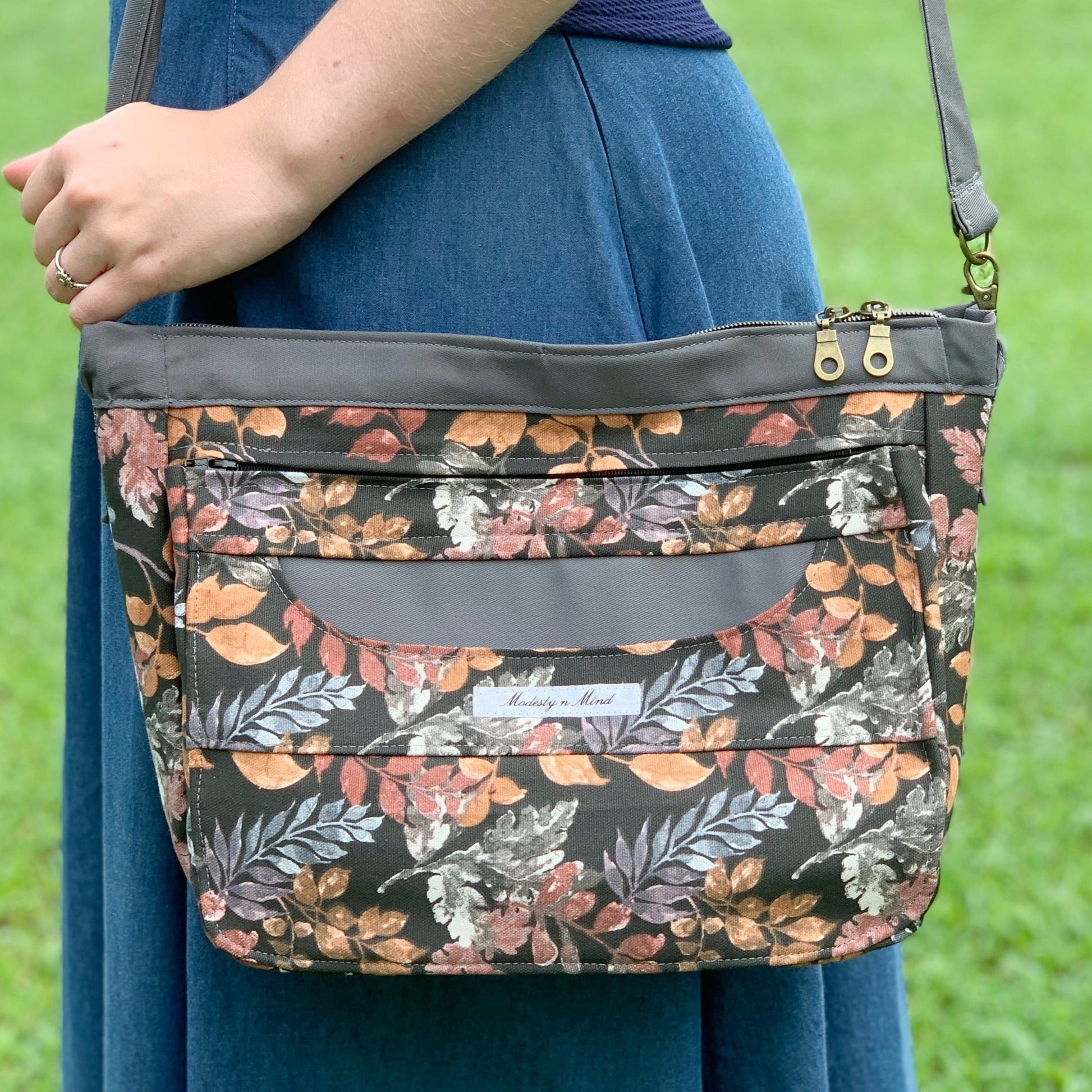 Approximately measuring 9"x9"x3", 8"x11"x3" or 12”x12”x3 1/2”, it can easily carry a small book & pens, crocheting project, or even a few diaper bag essentials. The pocket on the front is also handy for holding your phone where you can still hear it while running errands.