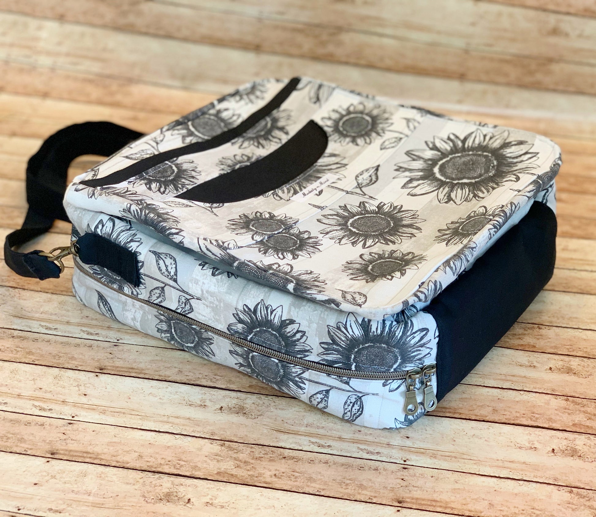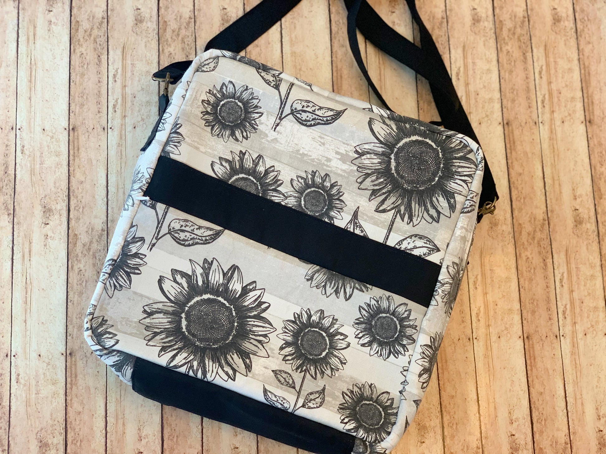 Designed to be a combination of a purse + book cover, MnM's Binder Bag (a larger version of the Bible Bag style), features several practical pockets, key hooks, & a strap that allows it to be worn as a crossbody or shoulder purse.