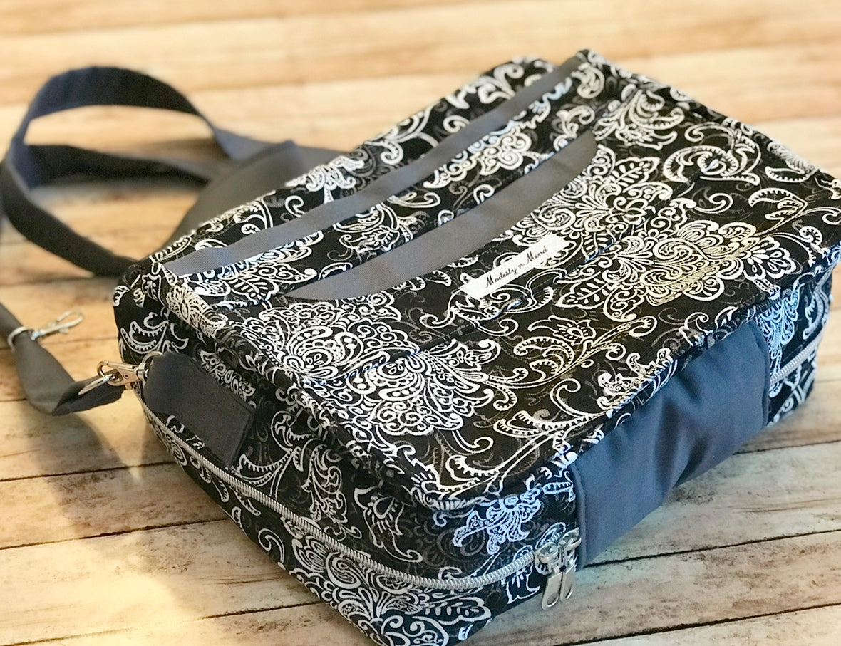 This particular Bible Bag is custom sewn from a black, white & gray canvas print + gray solid, off of the specifications submitted/selected in the customization box above (or entered into 'order notes' at checkout)