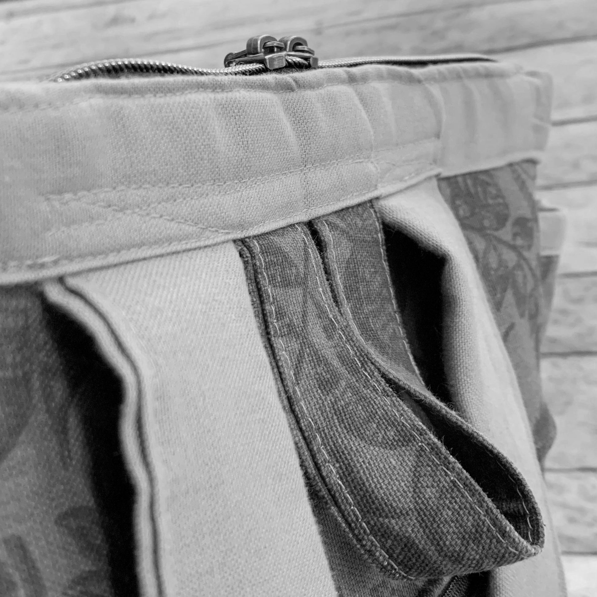 Turn inside out (in main compartment) & machine wash gentle on cool. Hang up to dry. Do not iron. {Please note that as the canvas is not prewashed, colors may experience slight fading}