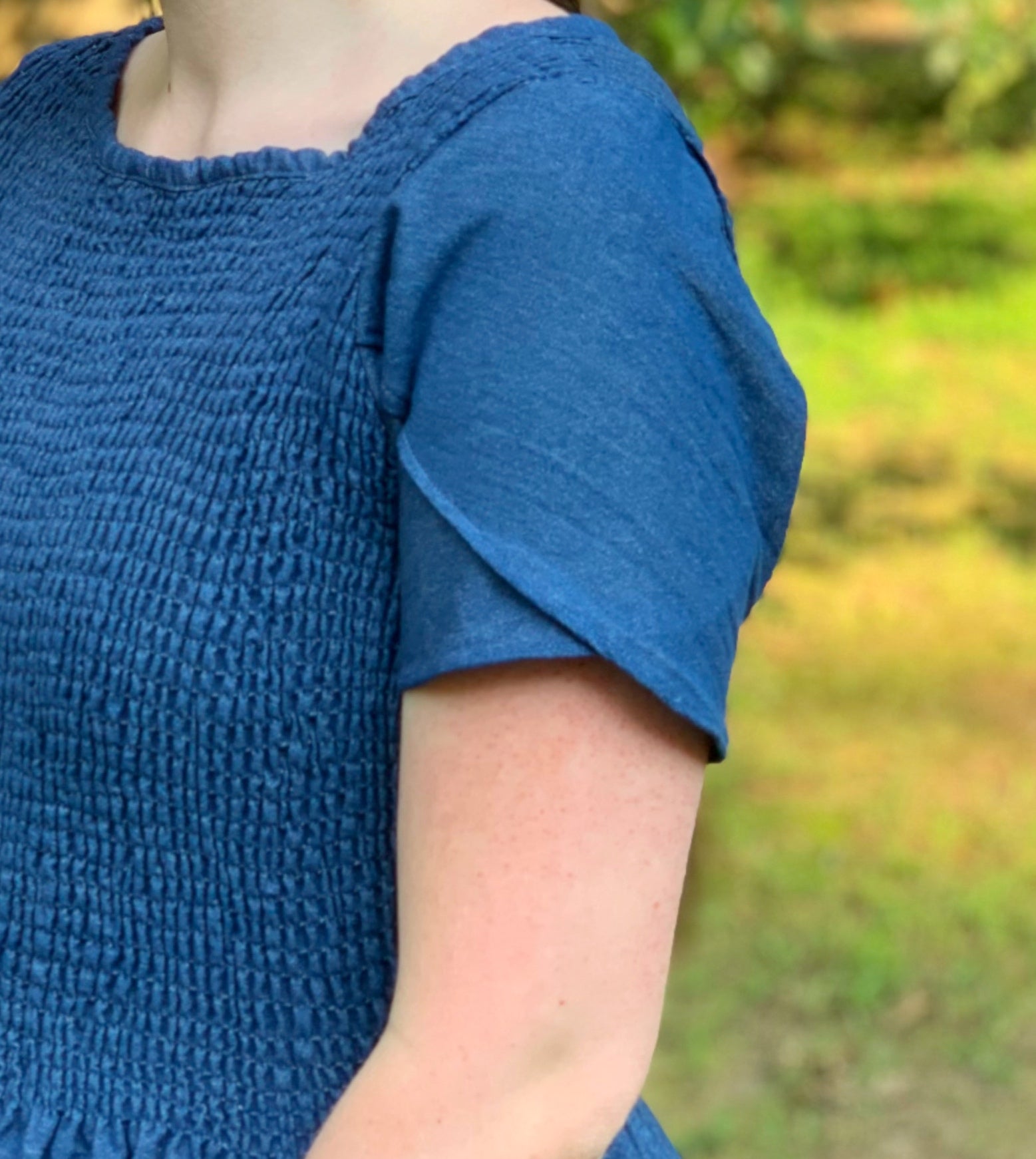 This modest maxi dress features shirring (a.k.a smocking) on both the front and back of the bodice, creating a comfortable elastic fit. Having a gathered flare & petal-style sleeves, it is perfect as a year-round wardrobe staple.