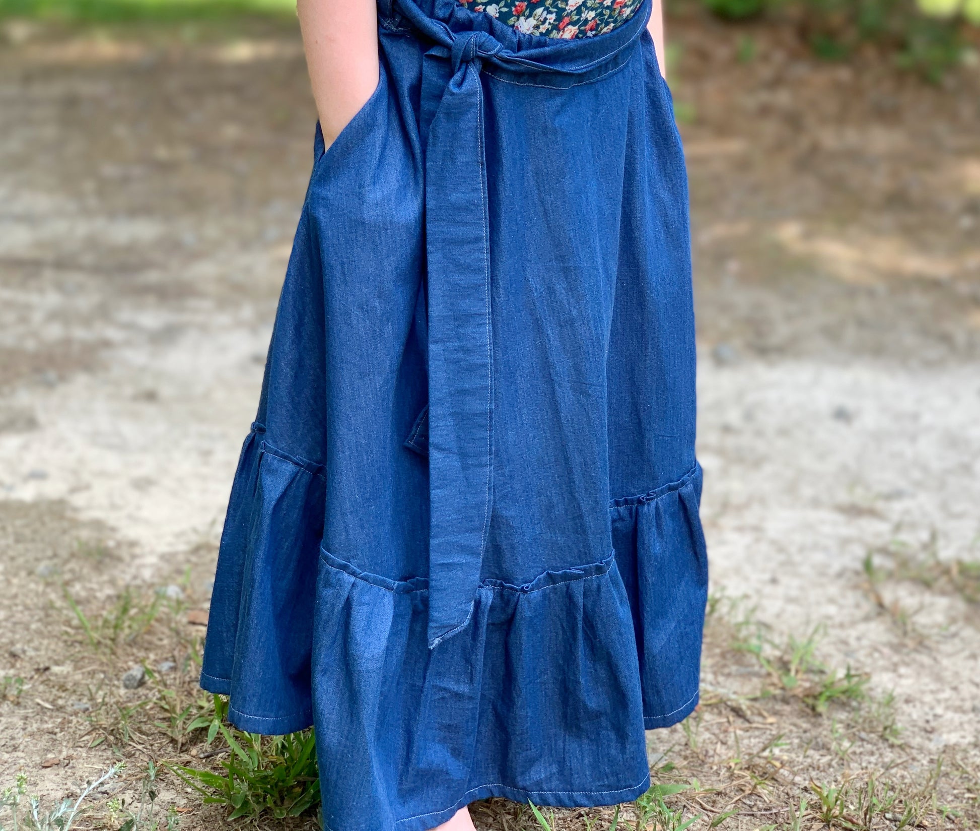 This particular skirt is sewn from a 100% cotton lightweight denim, off of the size range or measurements selected/entered above (or in 'order notes' at checkout).