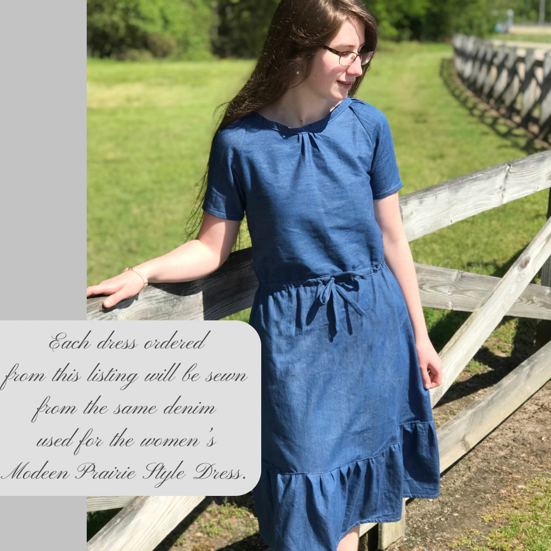 MnM's Modern Prairie Style Dress for girls is perfect for not just spring, but all year! Sewn from a light-medium weight material of your choosing, it features an adjustable drawstring waist for a comfortable & long-lasting fit. The functional design makes it ideal for everyday wear, offering a modest yet fashionable look for your little one.