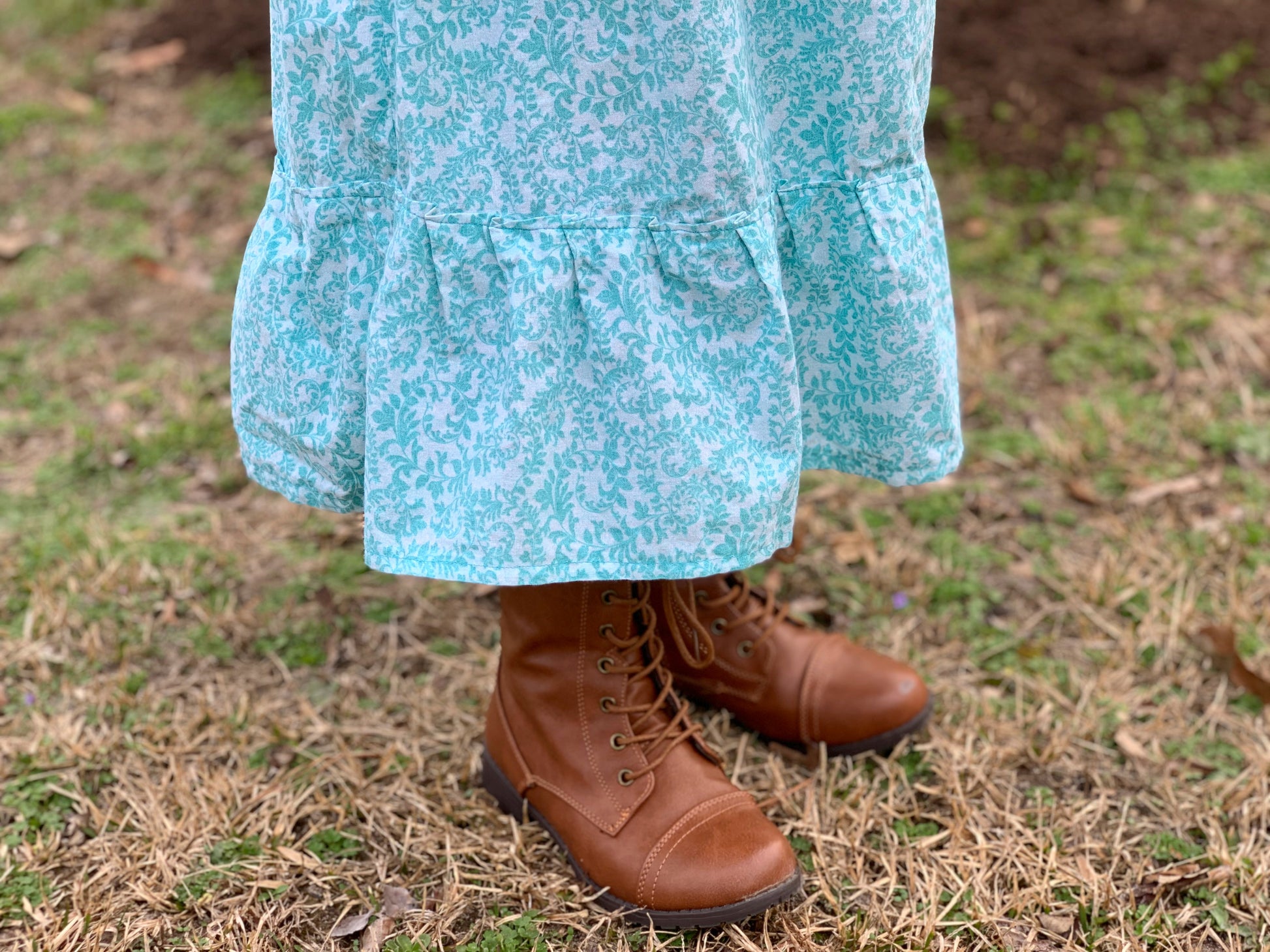 MnM's Modern Prairie Style Dress for girls is perfect for not just spring, but all year! Sewn from a lightweight 100% cotton material, it features an adjustable drawstring waist for a comfortable & long-lasting fit. The functional design makes it ideal for everyday wear, offering a modest yet fashionable look for your little one.