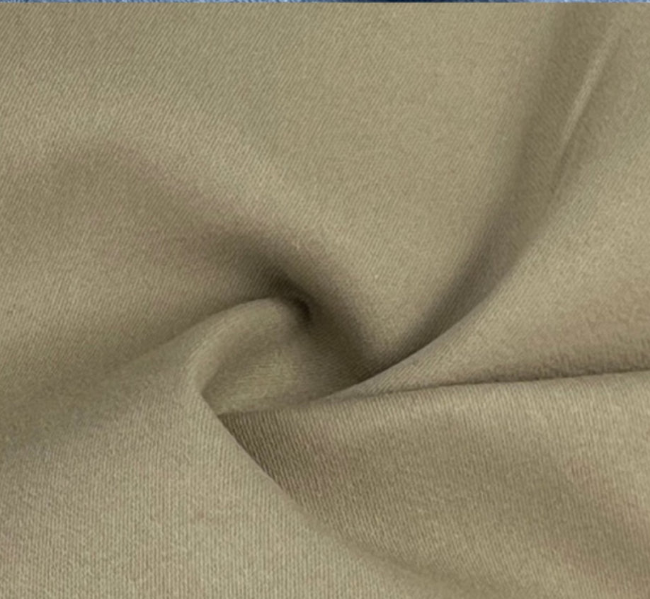 This particular skirt is made from a 100% cotton medium weight khaki twill, can be fashionably paired with any style shirt, and is perfect worn with flats, sandals, or boots!