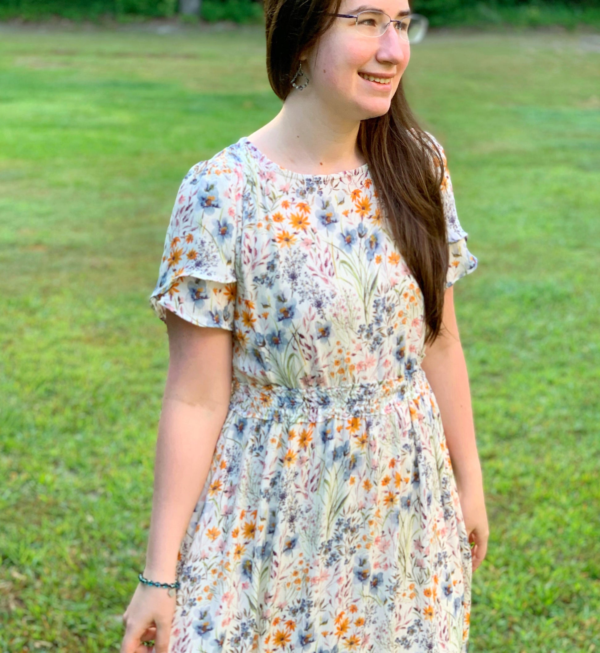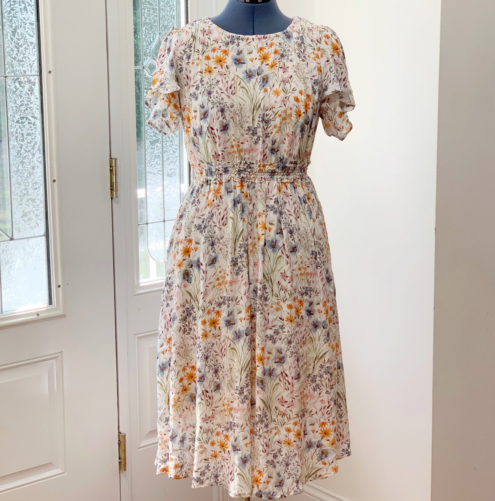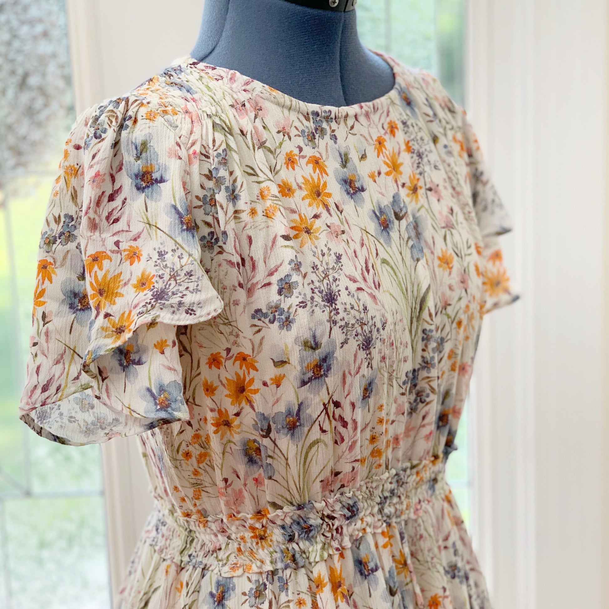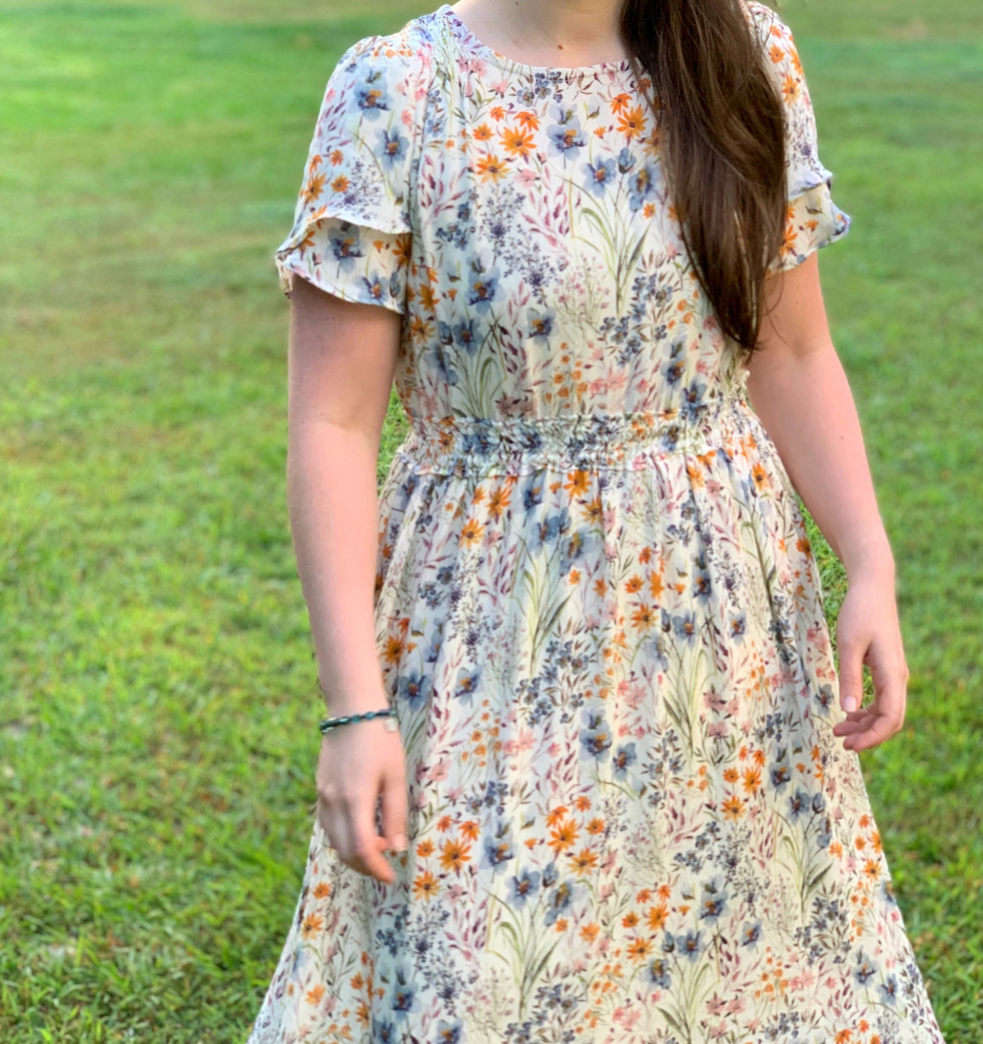 Featuring details like smocking at the shoulder seams & waist, and petal-style sleeves, this lightweight dress is perfect for warm summer weather.