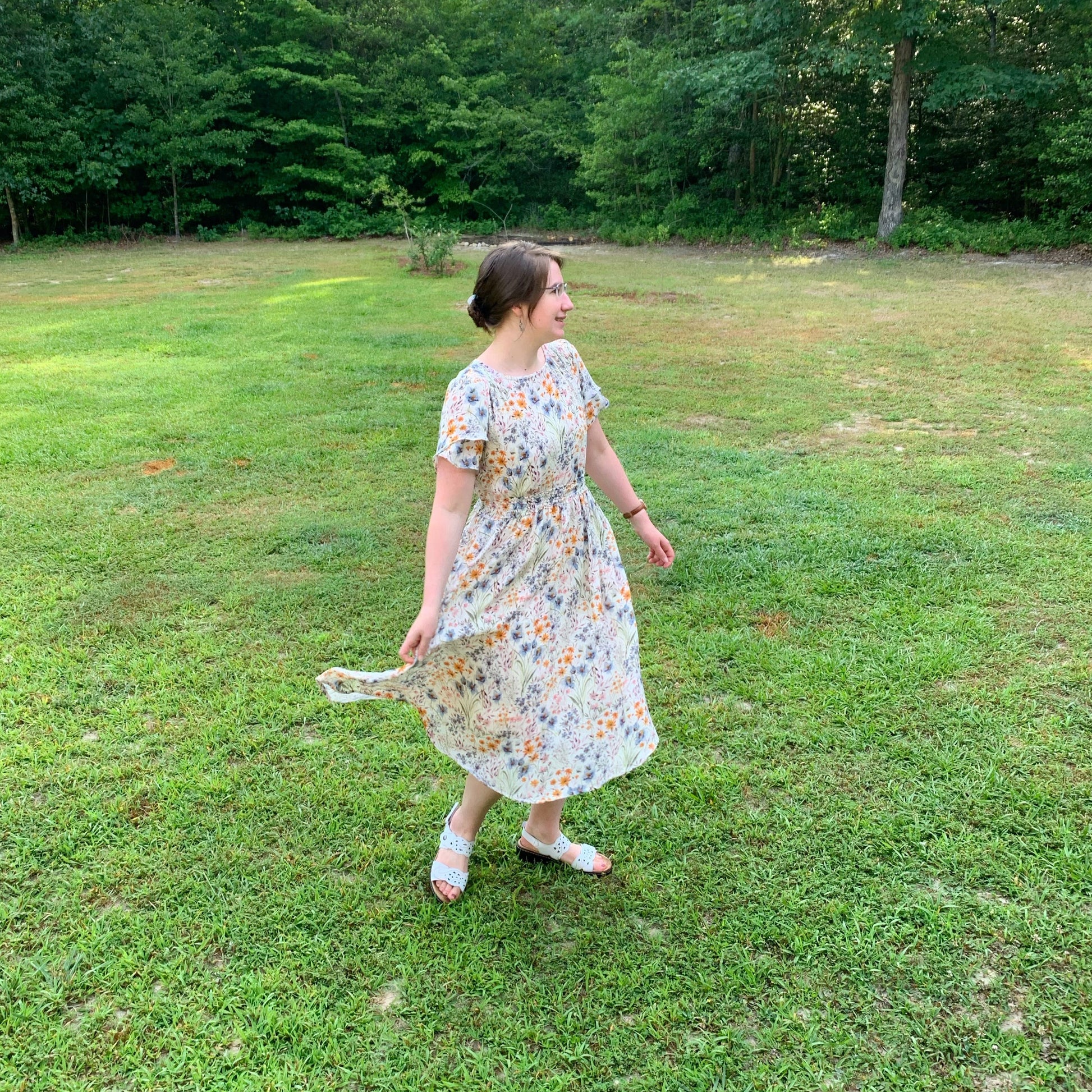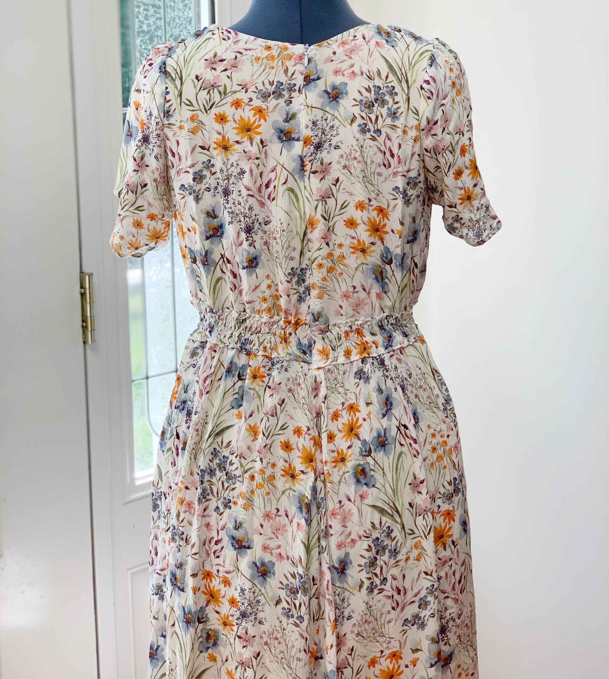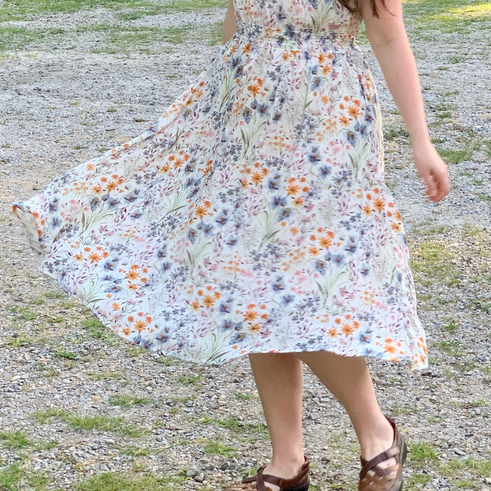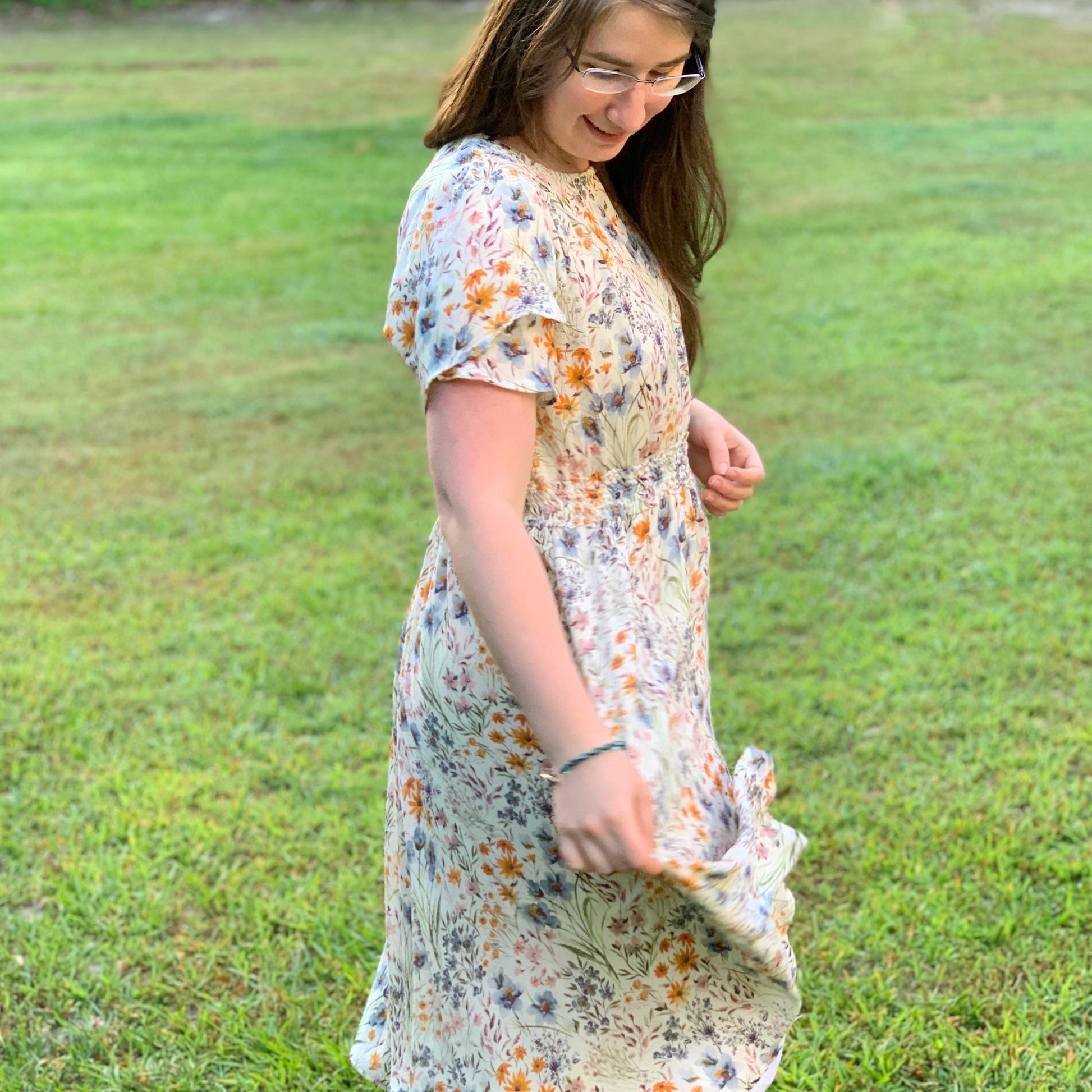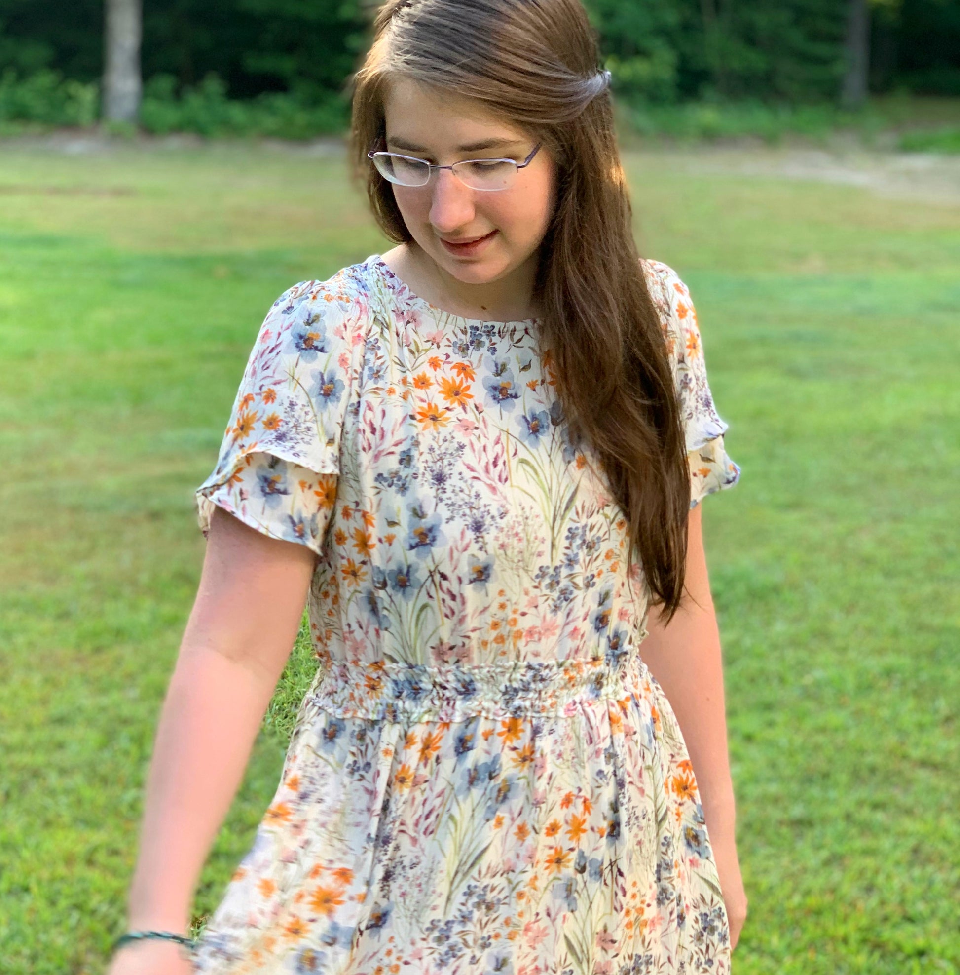 Featuring details like smocking at the shoulder seams & waist, and petal-style sleeves, this lightweight dress is perfect for warm summer weather.