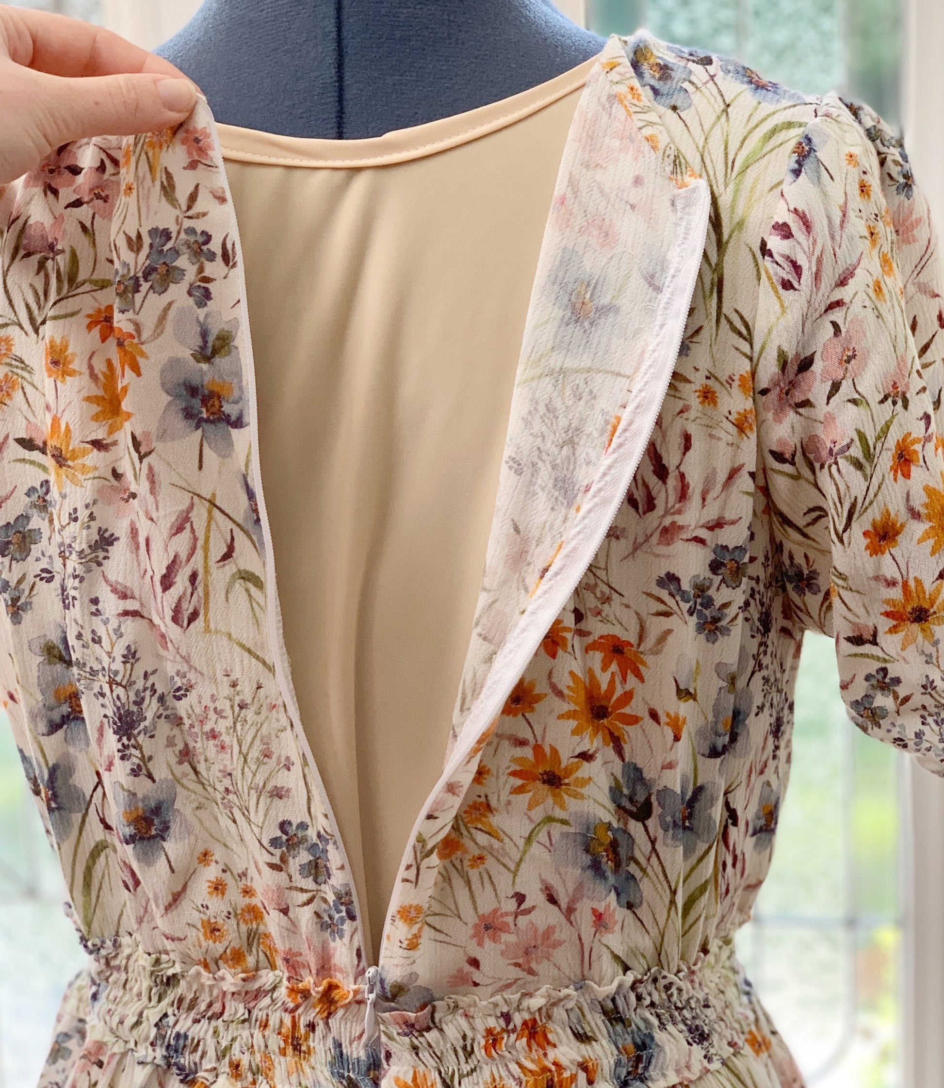 Custom sewn off of measurements, it also has a built-in slip made from a polyester/spandex material, making it fully lined.