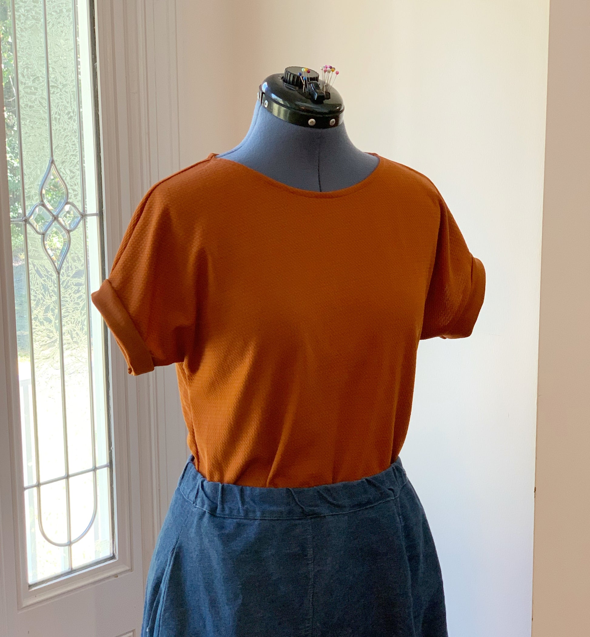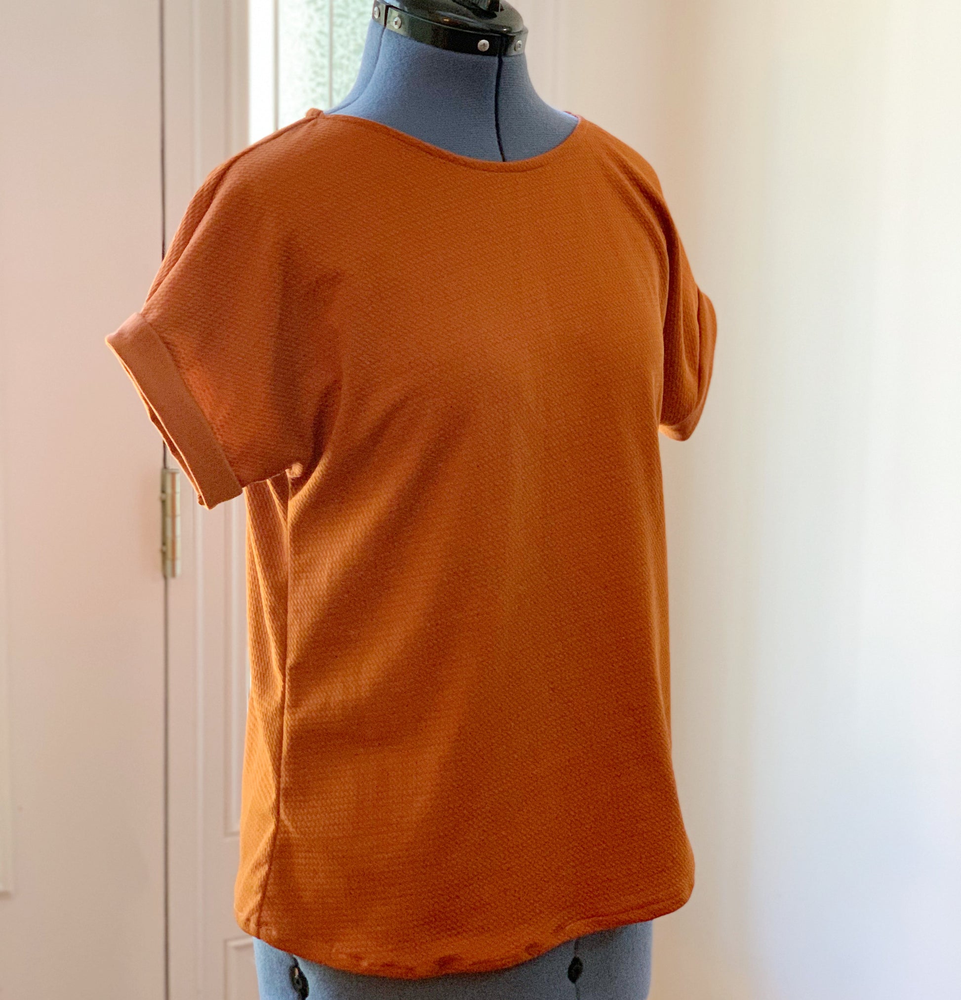 Being light-medium weight and comfortable, the textured material allows room for it to be very casual to somewhat dressy. Pair with your favorite jewelry, a scarf, or simply wear as is!