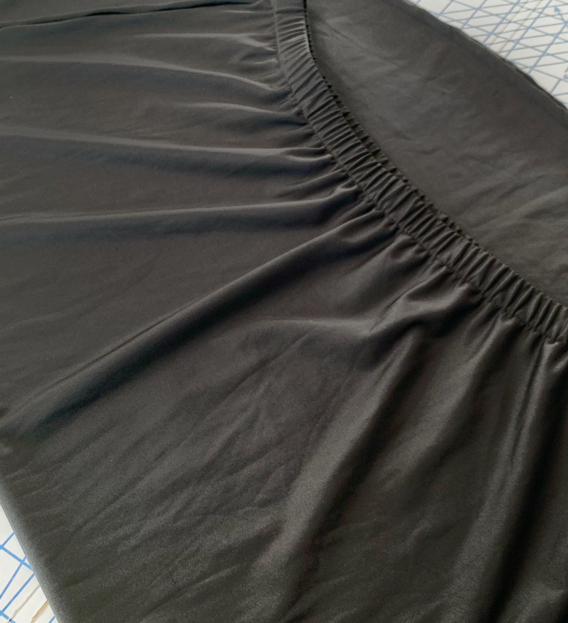 Sewn from a light-medium weight 82% Nylon, 18% Spandex active/swim material. The black material is advertised to be rated UPF 50+ for sun safety.